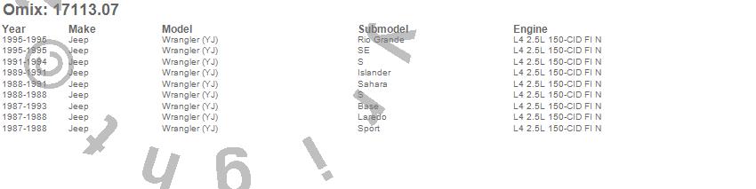 Wrangler (YJ), Jeep, 1995, 1994, 1993, 1992, 1991, 1990, 1989, 1988, 1987