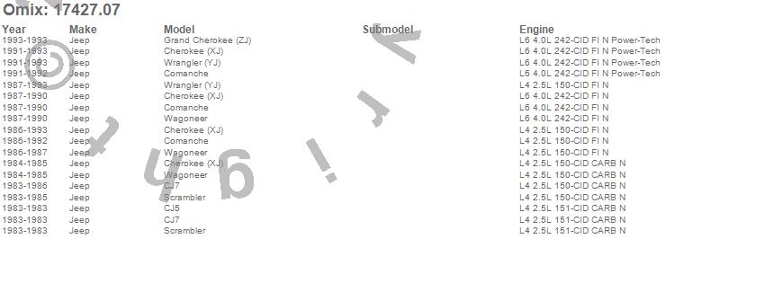 Cherokee (XJ), CJ5, CJ7, Comanche, Grand Cherokee (ZJ), Scrambler, Wagoneer, Wrangler (YJ), Jeep, 1993, 1992, 1991, 1990, 1989, 1988, 1987, 1986, 1985, 1984, 1983