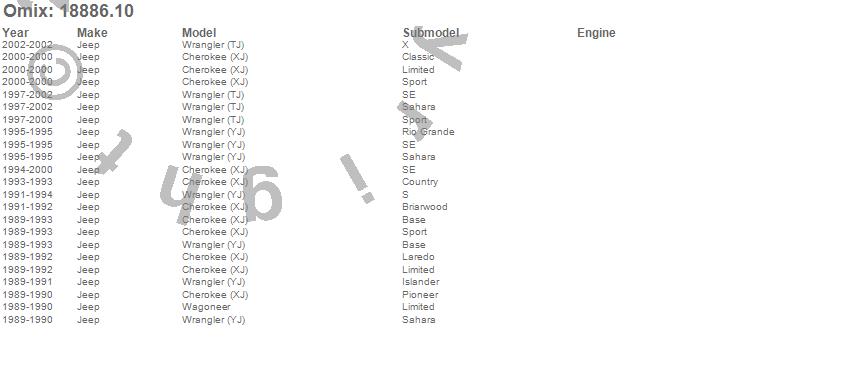 Cherokee (XJ), Wagoneer, Wrangler (TJ), Wrangler (YJ), Jeep, 2002, 2001, 2000, 1999, 1998, 1997, 1996, 1995, 1994, 1993, 1992, 1991, 1990, 1989