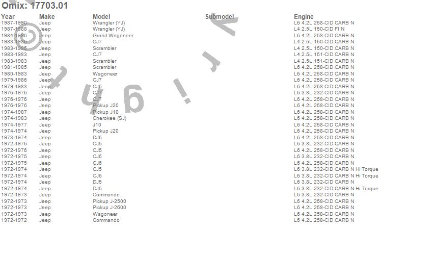 Cherokee (SJ), CJ5, CJ6, CJ7, Commando, DJ5, Grand Wagoneer, J-2500, J-2600, J10, J20, Scrambler, Wagoneer, Wrangler (YJ), Jeep, 1990, 1989, 1988, 1987, 1986