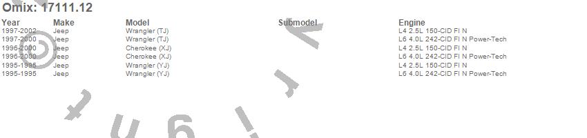 Cherokee (XJ), Wrangler (TJ), Wrangler (YJ), Jeep, 2002, 2001, 2000, 1999, 1998, 1997, 1996, 1995