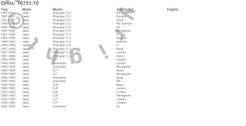 CJ5, CJ7, Scrambler, Wrangler (TJ), Wrangler (YJ), Jeep, 2001, 2000, 1999, 1998, 1997, 1995, 1994, 1993, 1992, 1991, 1990, 1989, 1988, 1987