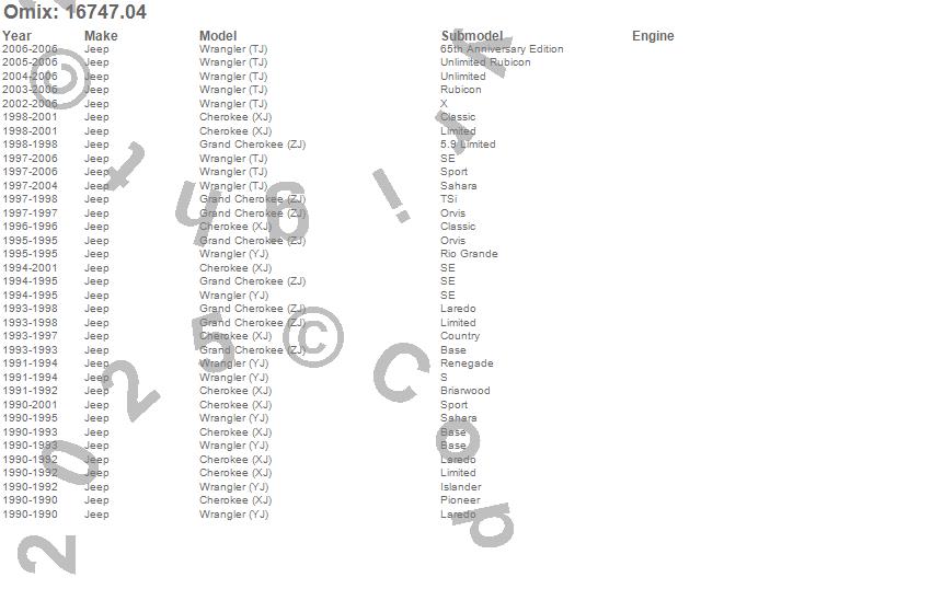 Cherokee (XJ), Grand Cherokee (ZJ), Wrangler (LJ), Wrangler (TJ), Wrangler (YJ), Jeep, 2006, 2005, 2004, 2003, 2002, 2001, 2000, 1999, 1998, 1997, 1996, 1995, 1994, 1993