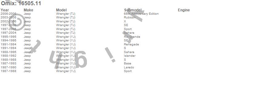 Wrangler (TJ), Wrangler (YJ), Jeep, 2006, 2005, 2004, 2003, 2002, 2001, 2000, 1999, 1998, 1997, 1995, 1994, 1993, 1992, 1991, 1990, 1989