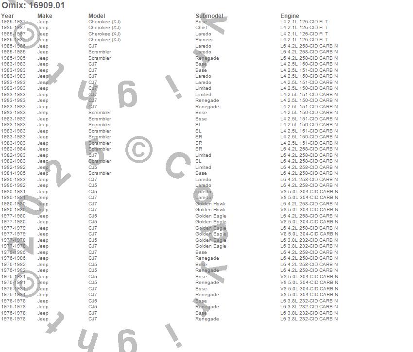 Cherokee (XJ), CJ5, CJ7, Scrambler, Jeep, 1987, 1986, 1985, 1984, 1983, 1982, 1981, 1980, 1979, 1978, 1977, 1976