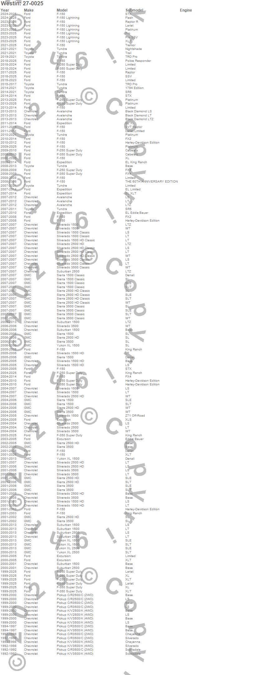 Avalanche, C2500 Pickup, C3500 Pickup, Excursion, Expedition, F-150, F-150 Lightning, F-250 Super Duty, F-350 Super Duty, F-450 Super Duty, F-550 Super Duty, K2500 Pickup, K3500 Pickup, Sierra 1500, Sierra 1500 Classic, Sierra 2500 HD, Sierra 2500 HD Classic, Sierra 3500, Sierra 3500 Classic, Silverado 1500