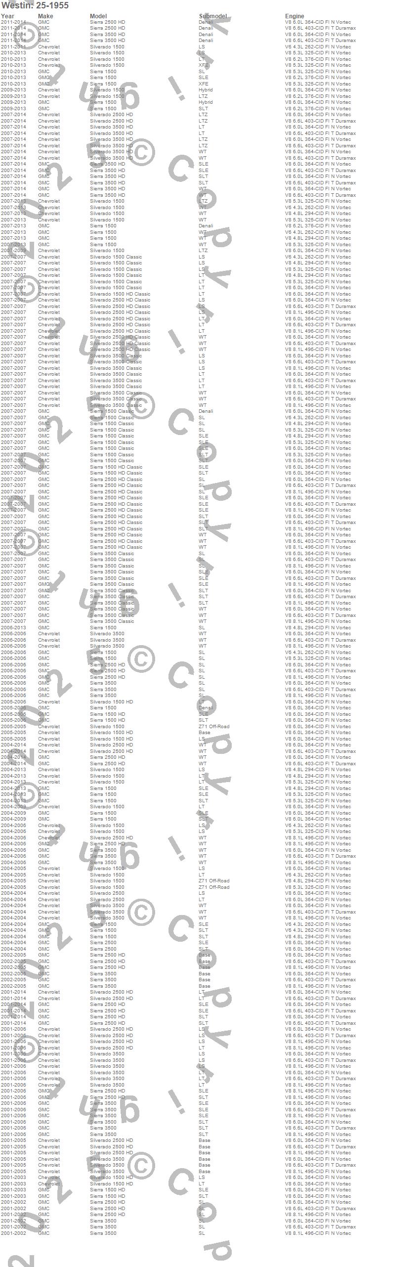 Sierra 1500, Sierra 1500 Classic, Sierra 1500 HD, Sierra 1500 HD Classic, Sierra 2500, Sierra 2500 HD, Sierra 2500 HD Classic, Sierra 3500, Sierra 3500 Classic, Sierra 3500 HD, Silverado 1500, Silverado 1500 Classic, Silverado 1500 HD, Silverado 1500 HD Classic, Silverado 2500, Silverado 2500 HD, Silverado 2500 HD Classic, Silverado 3500, Silverado 3500 Classic, Silverado 3500 HD