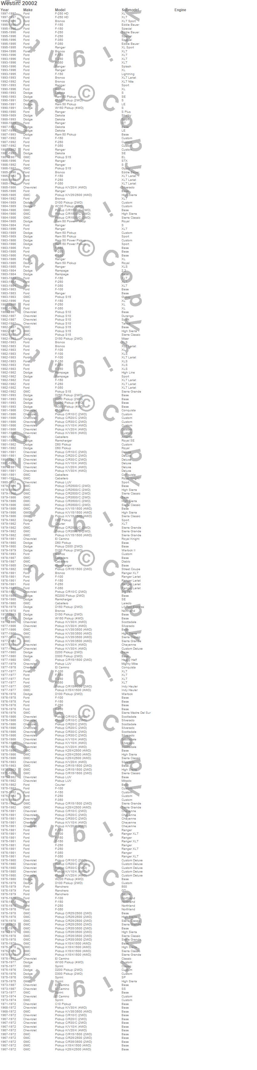 Bronco, C10 Pickup, C1500 Pickup, C20 Pickup, C25/C2500 Pickup, C2500 Pickup, C30 Pickup, C35/C3500 Pickup, C3500 Pickup, D100 Pickup, D150 Pickup, D200, D200 Pickup, D250 Pickup, D300 Pickup, D350 Pickup, F-100, F-150, F-250, F-250 HD