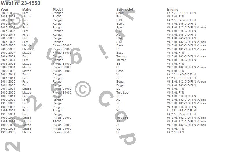 B2500, B3000, B4000, Ranger, Ford, Mazda, 2011, 2010, 2009, 2008, 2007, 2006, 2005, 2004, 2003, 2002, 2001, 2000, 1999, 1998