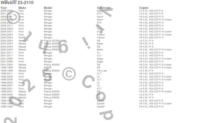 B2300, B2500, B3000, B4000, Ranger, Ford, Mazda, 2011, 2010, 2009, 2008, 2007, 2006, 2005, 2004, 2003, 2002, 2001, 2000, 1999