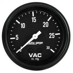 AutoMeter 2317 Autogage Vacuum Gauge 2-5/8 in. - Black Dial Face - White Pointer - White Incandescent Lighting - Mechanical - 0-30 IN HG