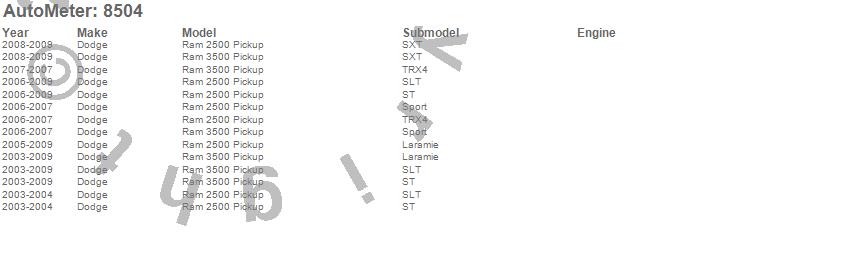 Below is an abbreviated list of applications for the Gen 3 Dodge Factory Match Mechanical Boost Gauge.