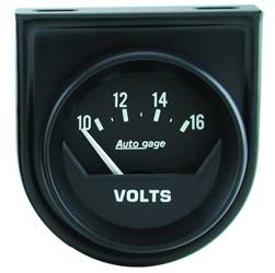 AutoMeter 2362 Autogage Electric Voltmeter Gauge 2-1/16 in. - Black Dial Face - White Pointer - White Incandescent Lighting - Electric Air-Core - 10-16V