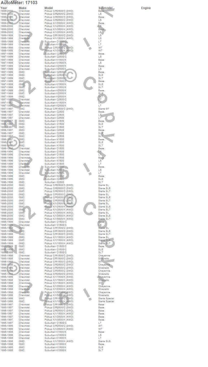 C1500 Pickup, C1500 Suburban, C2500 Pickup, C2500 Suburban, C3500 Pickup, K1500 Pickup, K1500 Suburban, K2500 Pickup, K2500 Suburban, K3500 Pickup, Chevrolet, GMC, 2000, 1999, 1998, 1997, 1996, 1995