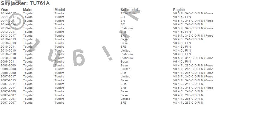 Tundra, Toyota, 2017, 2016, 2015, 2014, 2013, 2012, 2011, 2010, 2009, 2008, 2007
