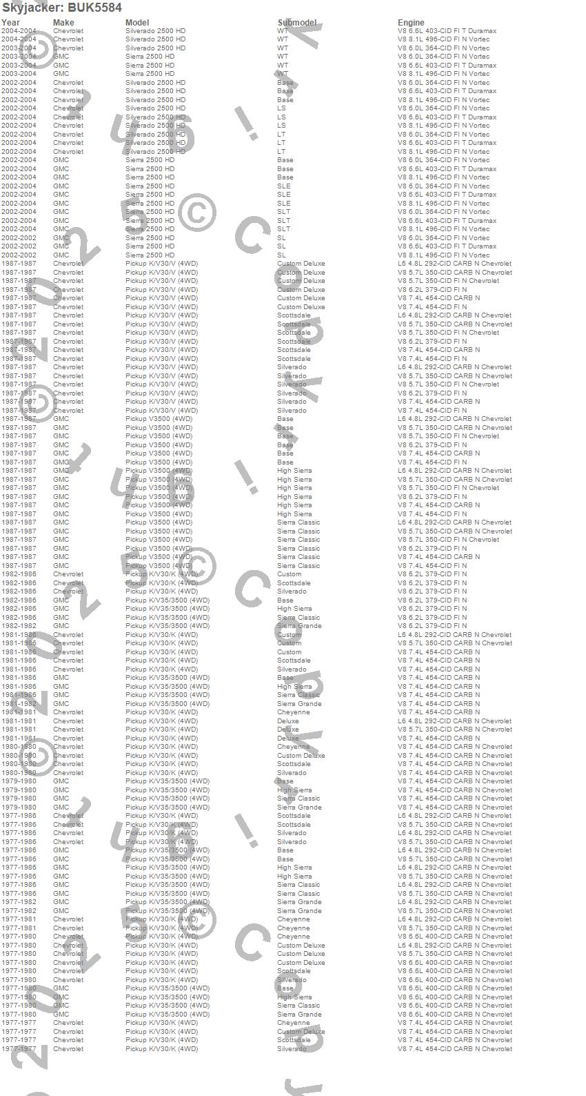 K30 Pickup, K35 Pickup, K3500 Pickup, Sierra 2500 HD, Silverado 2500 HD, V30 Pickup, V3500 Pickup, Chevrolet, GMC, 2004, 2003, 2002, 1987, 1986, 1985, 1984, 1983, 1982, 1981, 1980