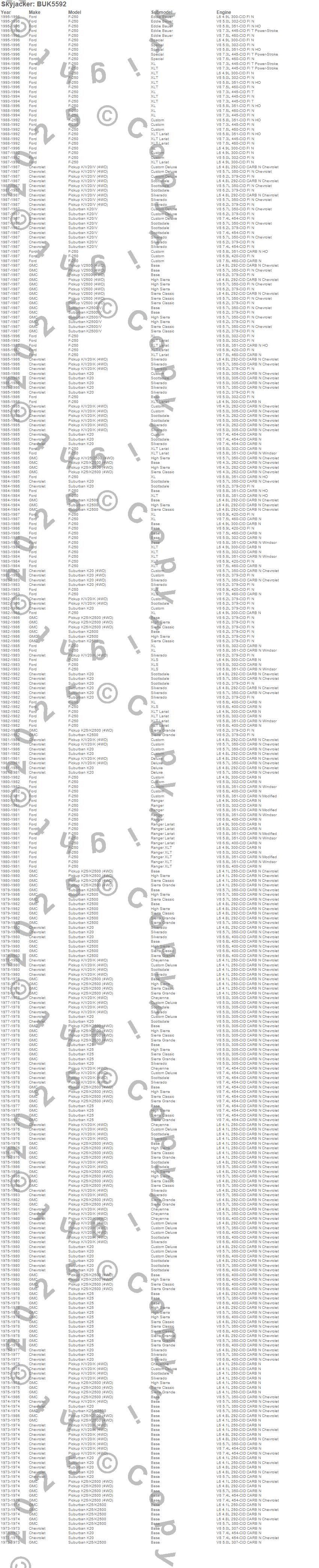 F-250, K20 Pickup, K20 Suburban, K25 Pickup, K25 Suburban, K25/K2500 Pickup, K25/K2500 Suburban, K2500 Pickup, K2500 Suburban, V20 Pickup, V20 Suburban, V2500 Pickup, V2500 Suburban, Chevrolet, Ford, GMC, 1996, 1995, 1994, 1993