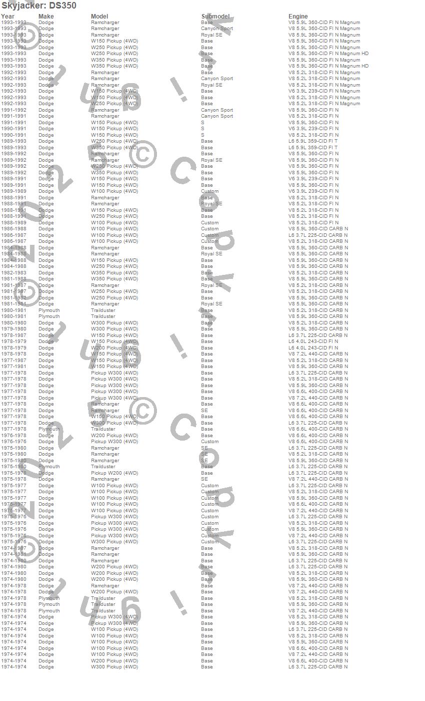 Ramcharger, Trailduster, W100 Pickup, W150 Pickup, W200 Pickup, W250 Pickup, W300 Pickup, W350 Pickup, Dodge, Plymouth, 1993, 1992, 1991, 1990, 1989, 1988, 1987, 1986, 1985, 1984