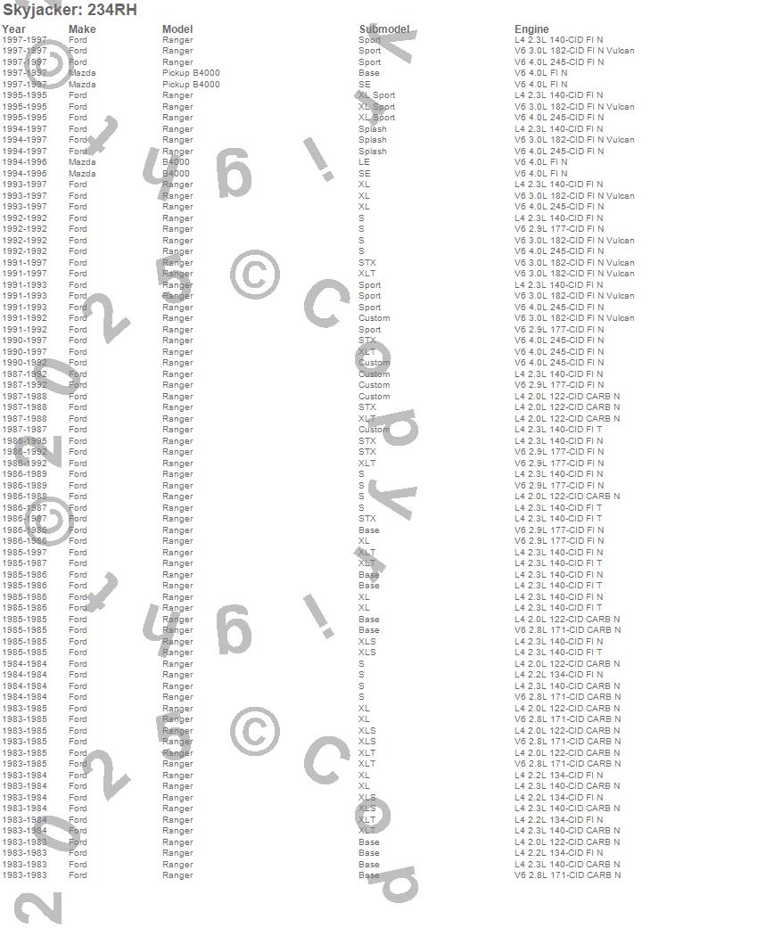 B4000, Ranger, Ford, Mazda, 1997, 1996, 1995, 1994, 1993, 1992, 1991, 1990, 1989, 1988, 1987, 1986, 1985, 1984, 1983