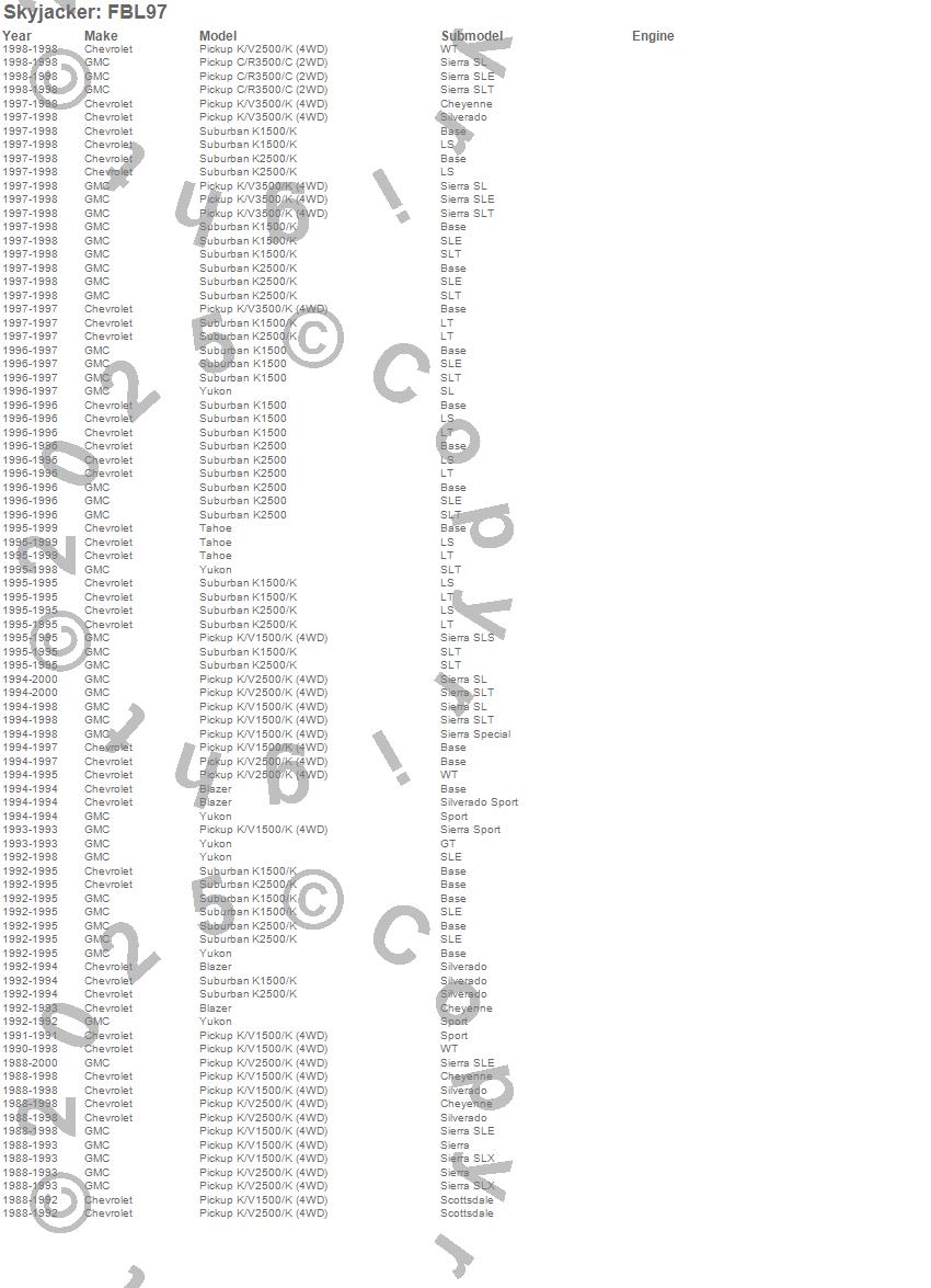 Blazer, C3500 Pickup, K1500, K1500 Pickup, K1500 Suburban, K2500 Pickup, K2500 Suburban, K3500 Pickup, Tahoe, Yukon, Chevrolet, GMC, 2000, 1999, 1998, 1997, 1996, 1995, 1994, 1993