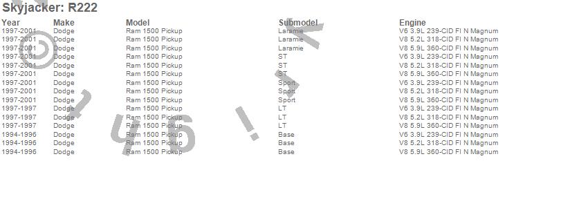 Ram 1500, Dodge, 2001, 2000, 1999, 1998, 1997, 1996, 1995, 1994