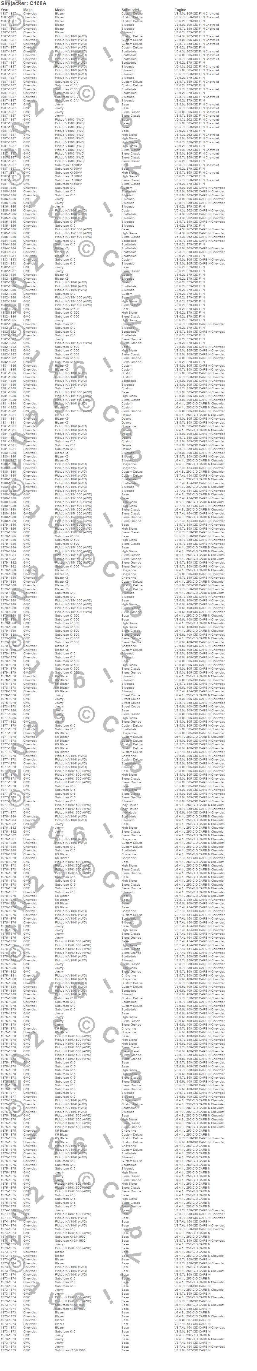 Blazer, Blazer K5, Jimmy, K10 Pickup, K10 Suburban, K15 Suburban, K15/K1500 Suburban, K1500 Pickup, K1500 Suburban, K5 Blazer, V10 Pickup, V10 Suburban, V1500 Pickup, V1500 Suburban, Chevrolet, GMC, 1987, 1986, 1985, 1984