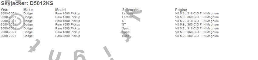 Skyjacker - Standard Class 1 Suspension Lift Kit P/N D5012KS Features: