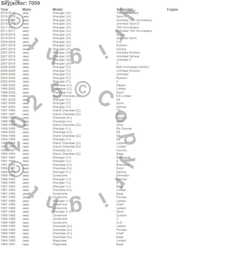 Cherokee (XJ), Comanche, Grand Cherokee (ZJ), Wagoneer, Wrangler (JK), Wrangler (TJ), Wrangler (YJ), Jeep, 2016, 2015, 2014, 2013, 2012, 2011, 2010, 2009, 2008, 2007, 2006, 2005