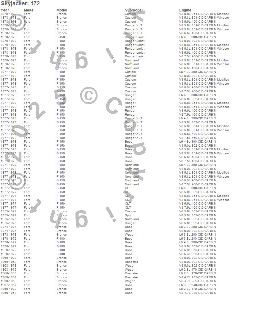 Bronco, F-100, F-150, Ford, 1979, 1978, 1977, 1976, 1975, 1974, 1973, 1972, 1971, 1970, 1969, 1968, 1967, 1966