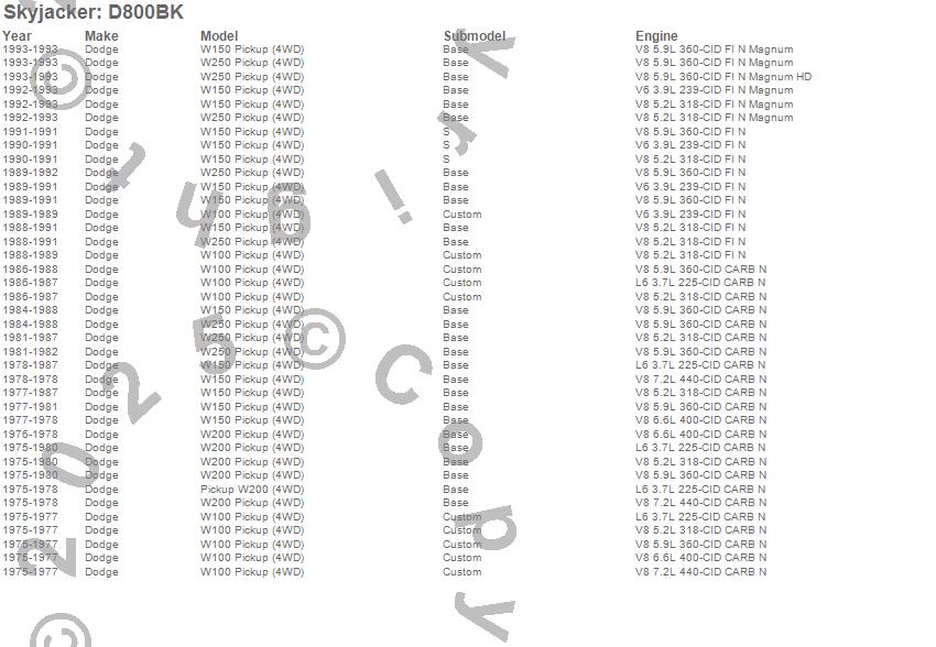 W100 Pickup, W150 Pickup, W200 Pickup, W250 Pickup, Dodge, 1993, 1992, 1991, 1990, 1989, 1988, 1987, 1986, 1985, 1984, 1983, 1982, 1981, 1980, 1979