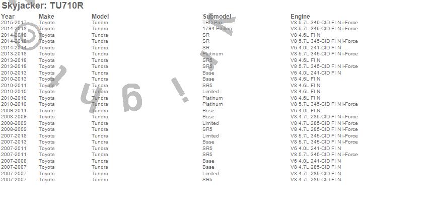 Tundra, Toyota, 2018, 2017, 2016, 2015, 2014, 2013, 2012, 2011, 2010, 2009, 2008, 2007