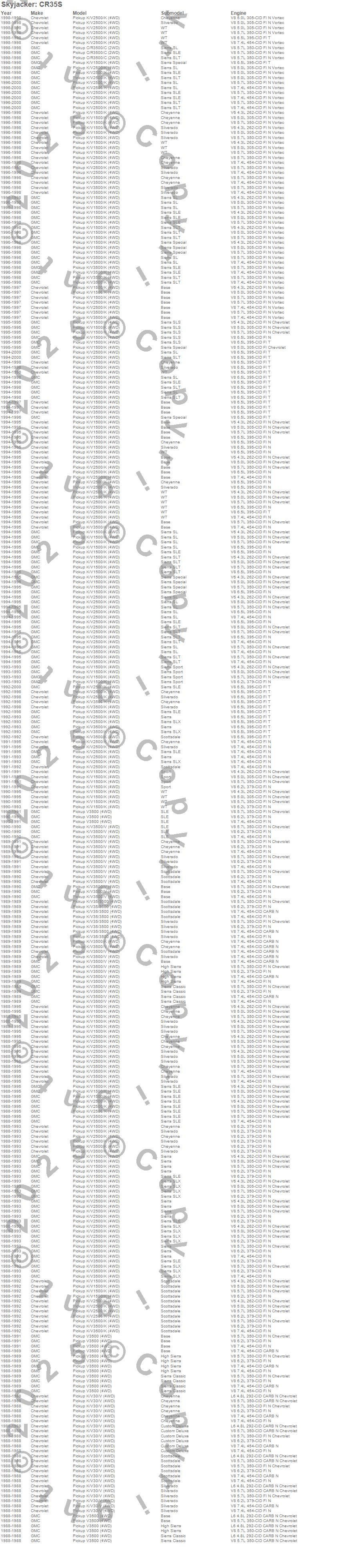 C3500 Pickup, K1500, K1500 Pickup, K2500 Pickup, K3500 Pickup, V30 Pickup, V3500 Pickup, Chevrolet, GMC, 2000, 1999, 1998, 1997, 1996, 1995, 1994, 1993, 1992, 1991, 1990