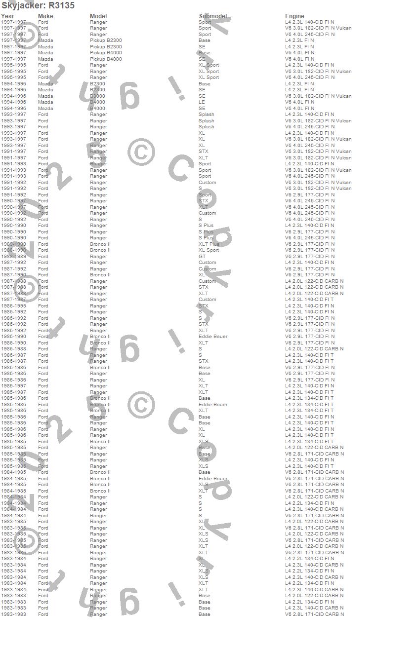 B2300, B3000, B4000, Bronco II, Ranger, Ford, Mazda, 1997, 1996, 1995, 1994, 1993, 1992, 1991, 1990, 1989, 1988, 1987, 1986, 1985