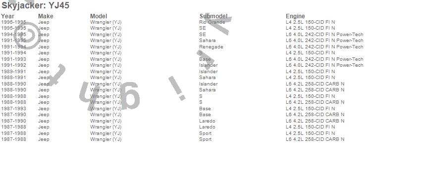 Wrangler (YJ), Jeep, 1995, 1994, 1993, 1992, 1991, 1990, 1989, 1988, 1987
