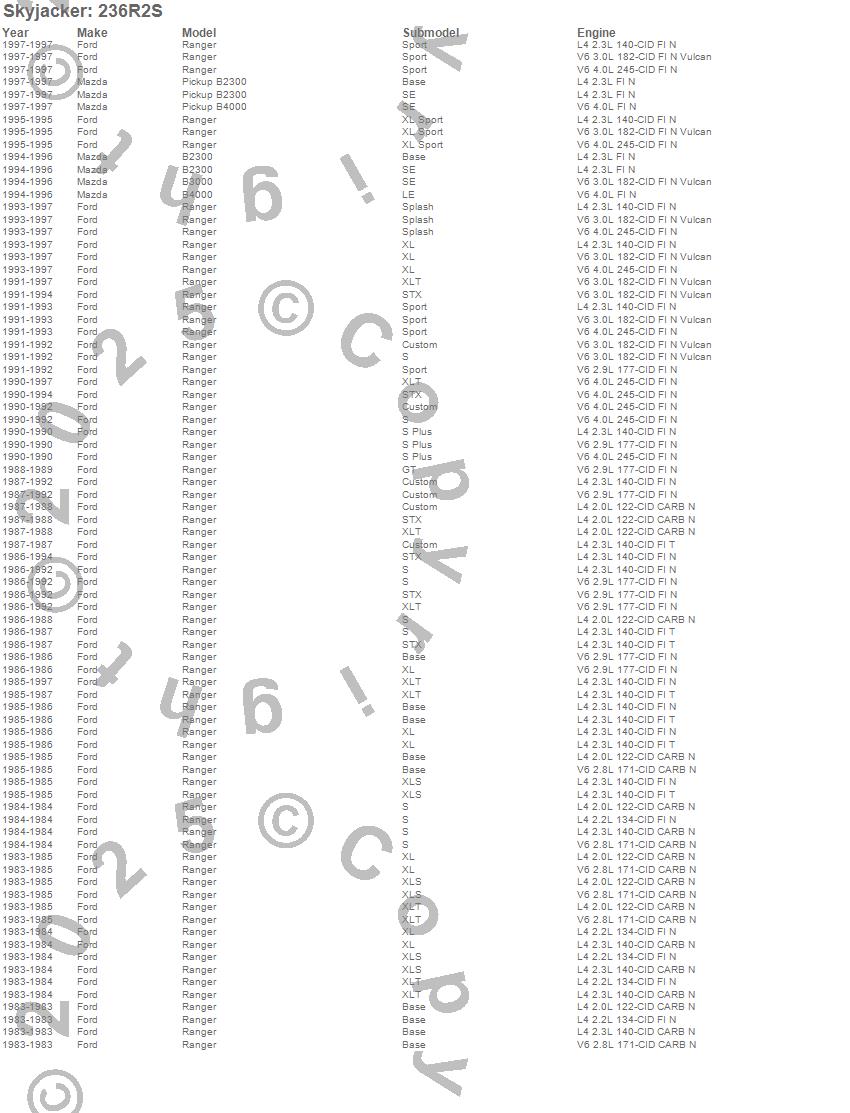 B2300, B3000, B4000, Ranger, Ford, Mazda, 1997, 1996, 1995, 1994, 1993, 1992, 1991, 1990, 1989, 1988, 1987, 1986, 1985, 1984
