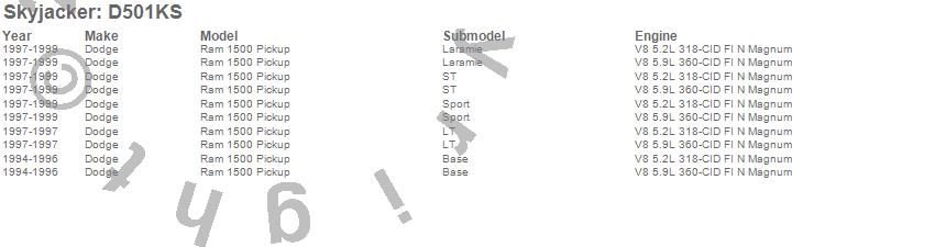 Skyjacker - Standard Class 1 Suspension Lift Kit P/N D501KS Features: