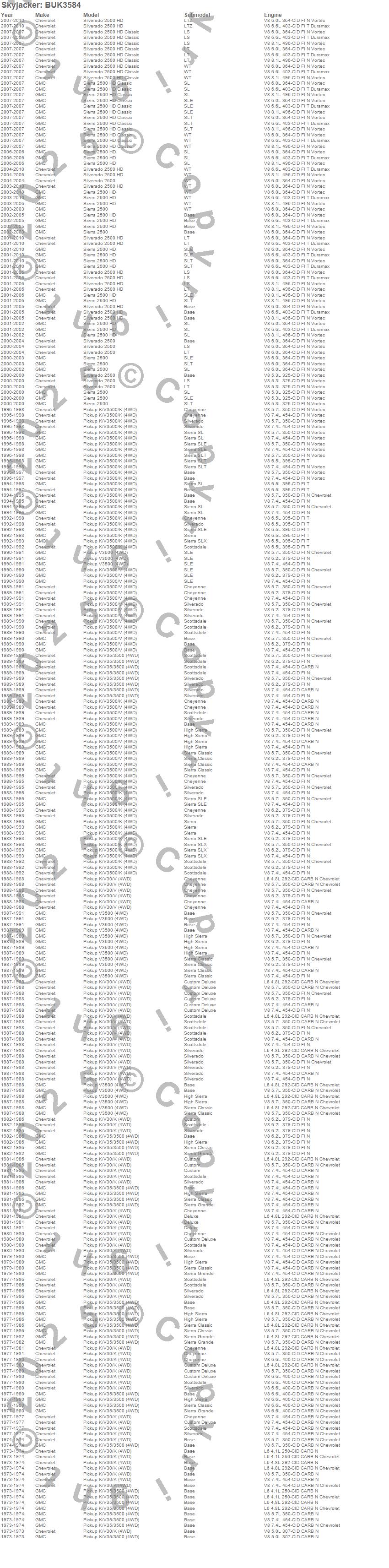K30 Pickup, K35 Pickup, K35/K3500 Pickup, K3500 Pickup, Sierra 2500, Sierra 2500 HD, Sierra 2500 HD Classic, Silverado 2500, Silverado 2500 HD, Silverado 2500 HD Classic, V30 Pickup, V3500 Pickup, Chevrolet, GMC, 2010, 2009, 2008, 2007, 2006, 2005