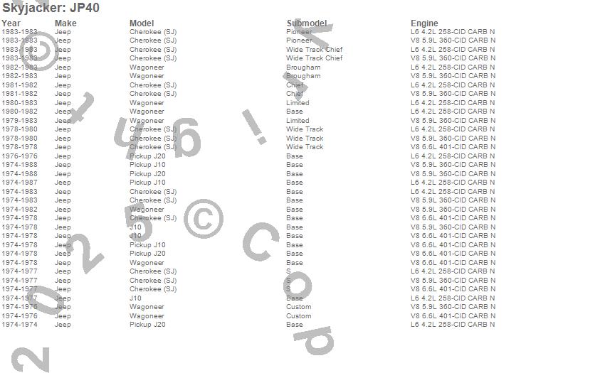 Cherokee (SJ), J10, J20, Wagoneer, Jeep, 1988, 1987, 1986, 1985, 1984, 1983, 1982, 1981, 1980, 1979, 1978, 1977, 1976, 1975, 1974