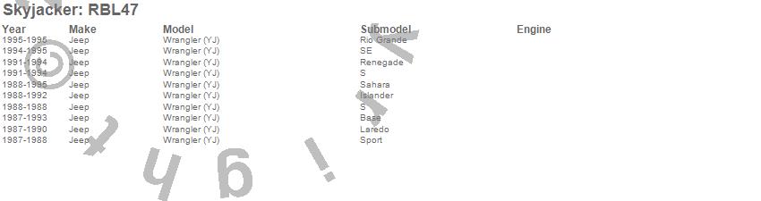 Wrangler (YJ), Jeep, 1995, 1994, 1993, 1992, 1991, 1990, 1989, 1988, 1987