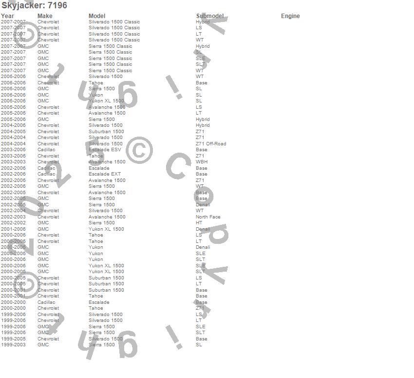 Avalanche 1500, Escalade, Escalade ESV, Escalade EXT, Sierra 1500, Sierra 1500 Classic, Silverado 1500, Silverado 1500 Classic, Suburban 1500, Tahoe, Yukon, Yukon XL 1500, Cadillac, Chevrolet, GMC, 2007, 2006, 2005, 2004, 2003