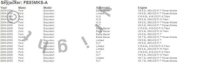 Skyjacker - Suspension Lift Kit P/N FE85MKS-A Features: