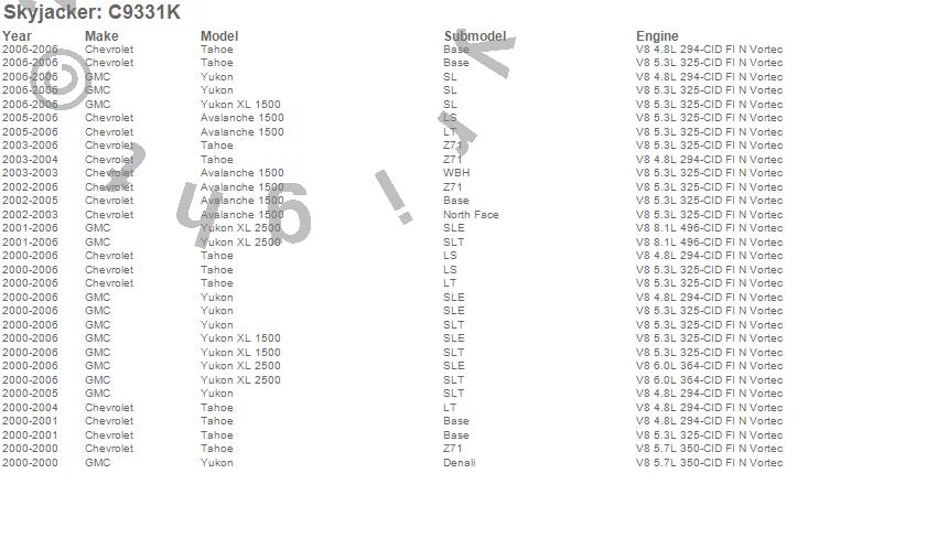 Avalanche 1500, Tahoe, Yukon, Yukon XL 1500, Yukon XL 2500, Chevrolet, GMC, 2006, 2005, 2004, 2003, 2002, 2001, 2000
