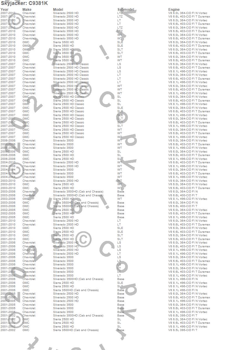 Sierra 2500 HD, Sierra 2500 HD Classic, Sierra 3500 HD, Sierra 3500HD, Silverado 2500 HD, Silverado 2500 HD Classic, Silverado 3500, Silverado 3500 HD, Silverado 3500HD, Chevrolet, GMC, 2010, 2009, 2008, 2007, 2006, 2005, 2004, 2003, 2002
