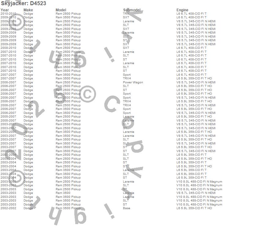 Ram 2500, Ram 3500, Dodge, 2010, 2009, 2008, 2007, 2006, 2005, 2004, 2003, 2002
