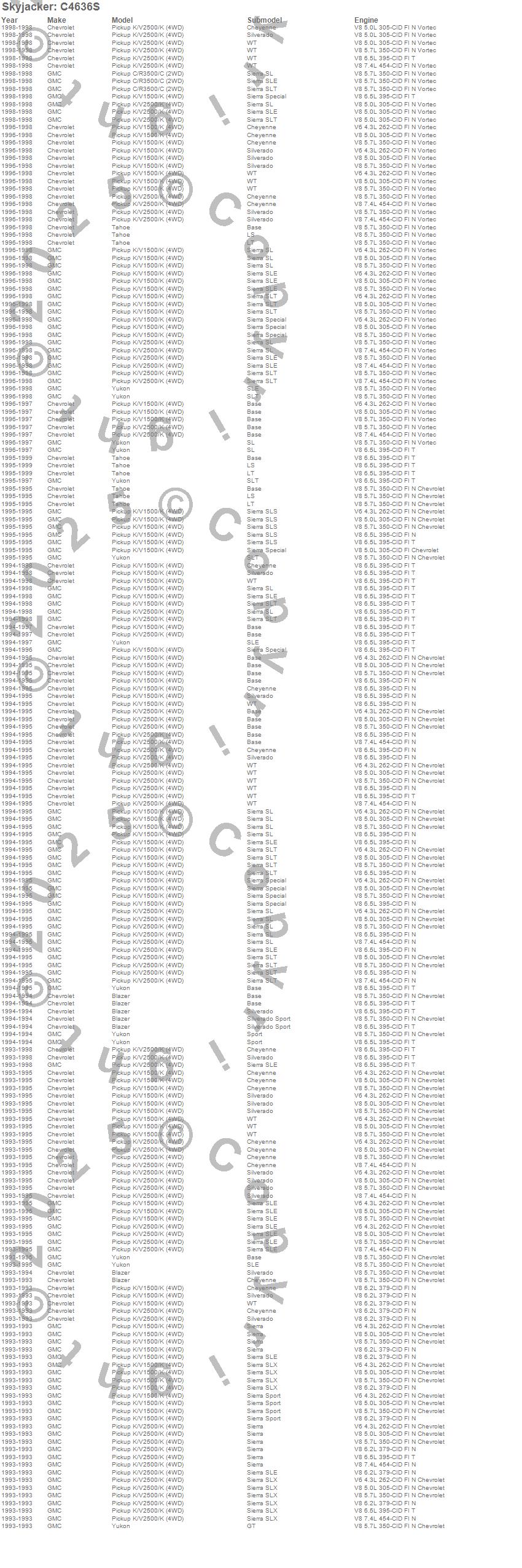 Blazer, C3500 Pickup, K1500, K1500 Pickup, K2500 Pickup, Tahoe, Yukon, Chevrolet, GMC, 1999, 1998, 1997, 1996, 1995, 1994, 1993