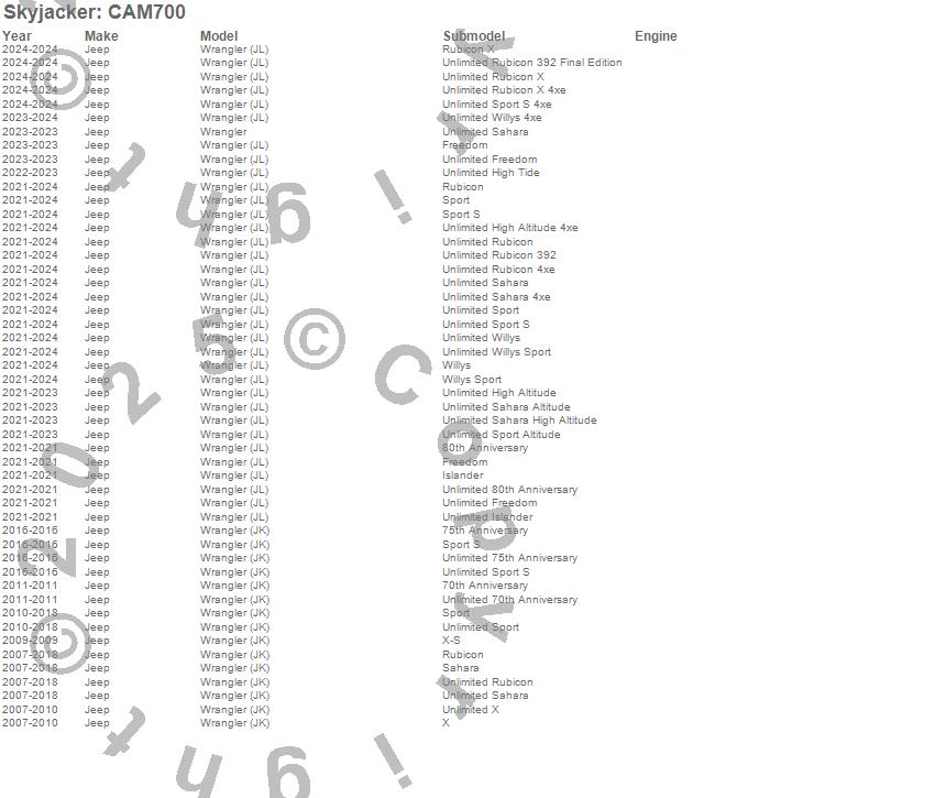 Wrangler, Wrangler (JK), Wrangler (JL), Jeep, 2024, 2023, 2022, 2021, 2018, 2017, 2016, 2015, 2014, 2013, 2012, 2011, 2010, 2009, 2008, 2007