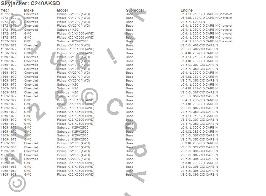 Skyjacker - Suspension Lift Kit P/N C240AKSD Features: