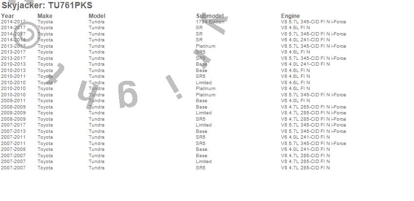 Skyjacker - Suspension Lift Kit P/N TU761PKS Features: