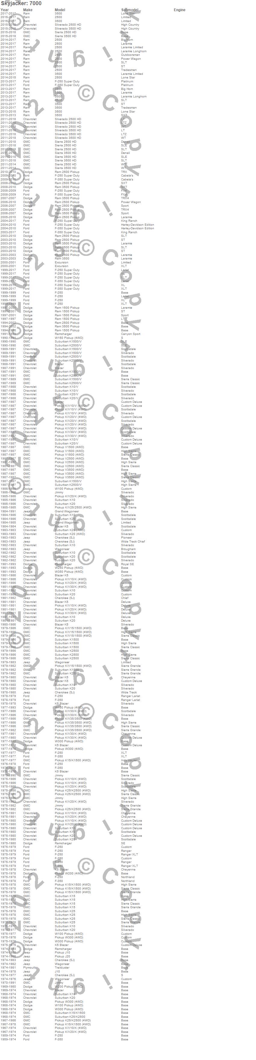 2500, 3500, Blazer, Blazer K5, Cherokee (SJ), Excursion, F-250, F-250 Super Duty, F-350, F-350 Super Duty, Grand Wagoneer, J10, J20, Jimmy, K10 Pickup, K10 Suburban, K15 Suburban, K15/K1500, K15/K1500 Pickup, K15/K1500 Suburban