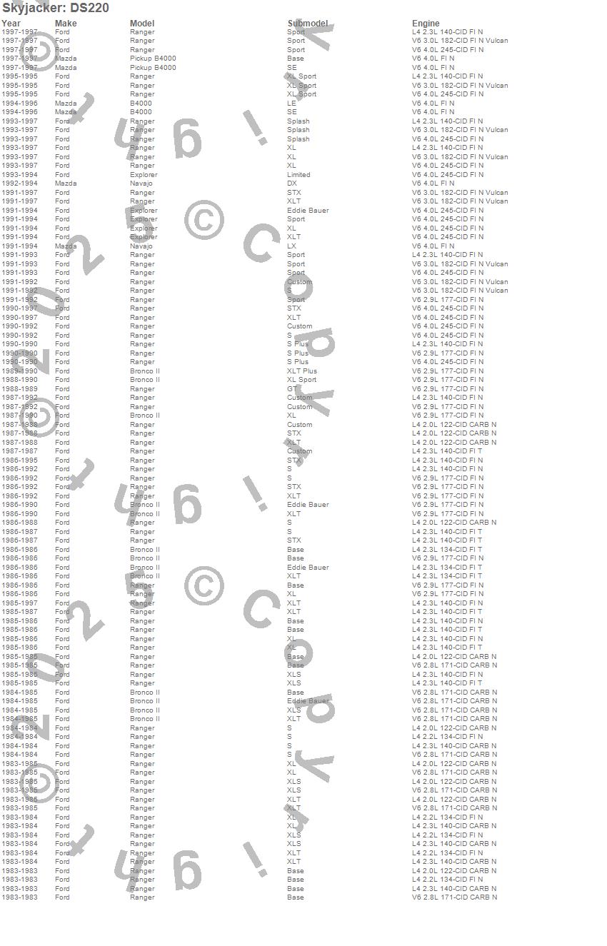 B4000, Bronco II, Explorer, Navajo, Ranger, Ford, Mazda, 1997, 1996, 1995, 1994, 1993, 1992, 1991, 1990, 1989, 1988, 1987, 1986, 1985